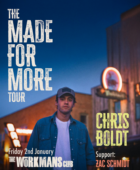 With his first single, Heaven’s Eyes, boasting over 10 million streams on Spotify, Chris Boldt makes a welcome return to Ireland to play the Workmans Club Friday, 2 January for one night only with special guest Zac Schmidt. This is the penultimate gig of his Made for More Tour.