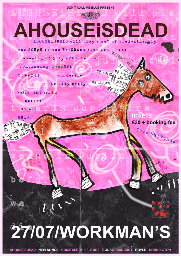 Don’t Call Me Blue present AHOUSEiSDEAD, live at the Workmans Club, July 27th. The band will play a set of predominantly new songs and a few old ones. Come see the future. Your future. X. dAvE and fErGaL