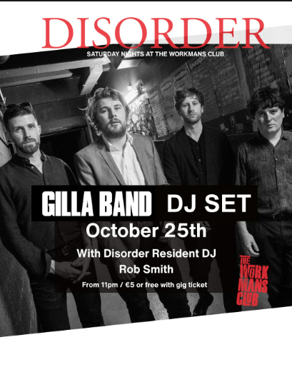 We’re delighted to announce that following their Sold Out show here on Oct 25th Gilla Band will be joining DISORDER resident DJ Rob Smith for a DJ set on the First Floor!!