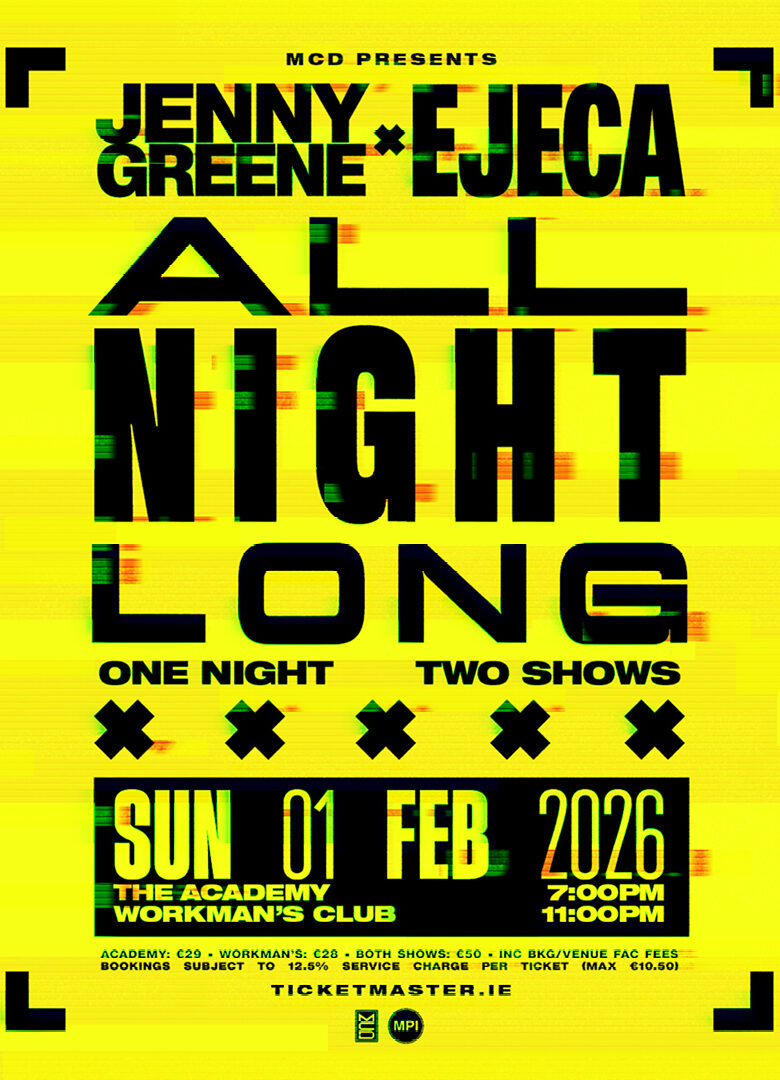 What sets Jenny apart is her versatility: commanding packed arenas, headlining theatres, and delivering electrifying sets in underground clubs with the same energy and authenticity. A true champion of Irish dance music, Jenny Greene continues to evolve while staying rooted in her passion for connecting audiences to the music she loves, across generations, genres, and stages