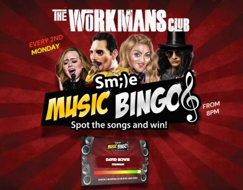 Everybody knows Bingo and everybody loves music! Workmans Music Bingo combines both. The numbers are replaced with music clips.